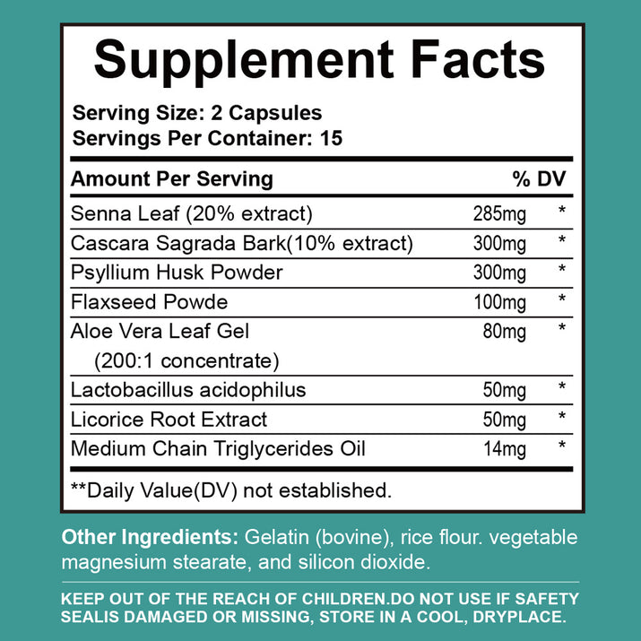 Answer 1: The product contains key ingredients like Senna leaf extract, which helps promote bowel movements; Poxi dried tangerine peel, aiding digestion; Plantain seed shell and flaxseed powder, providing fiber; Aloe leaf gel for intestinal health; and Lactobacillus acidophilus for gut flora support. Each ingredient works together to support overall digestive health.